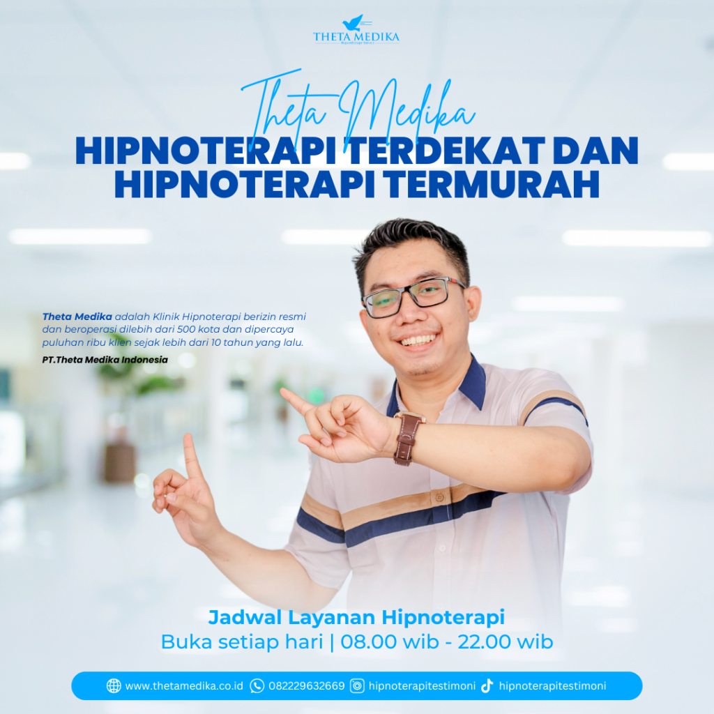 Hipnoterapi Jakarta Terdekat Dan Termurah – Theta Medika telah di kenal luas sebagai klinik hipnoterapi terpercaya di Jakarta Timur, dengan pengalaman lebih dari satu dekade dalam membantu individu mengatasi berbagai masalah psikologis dan perilaku. Selama lebih dari 10 tahun, Theta Medika telah menjadi pilihan utama bagi masyarakat Jakarta Timur dan sekitarnya yang mencari solusi profesional untuk berbagai tantangan mental, emosional, dan kebiasaan buruk yang mengganggu kehidupan sehari-hari.