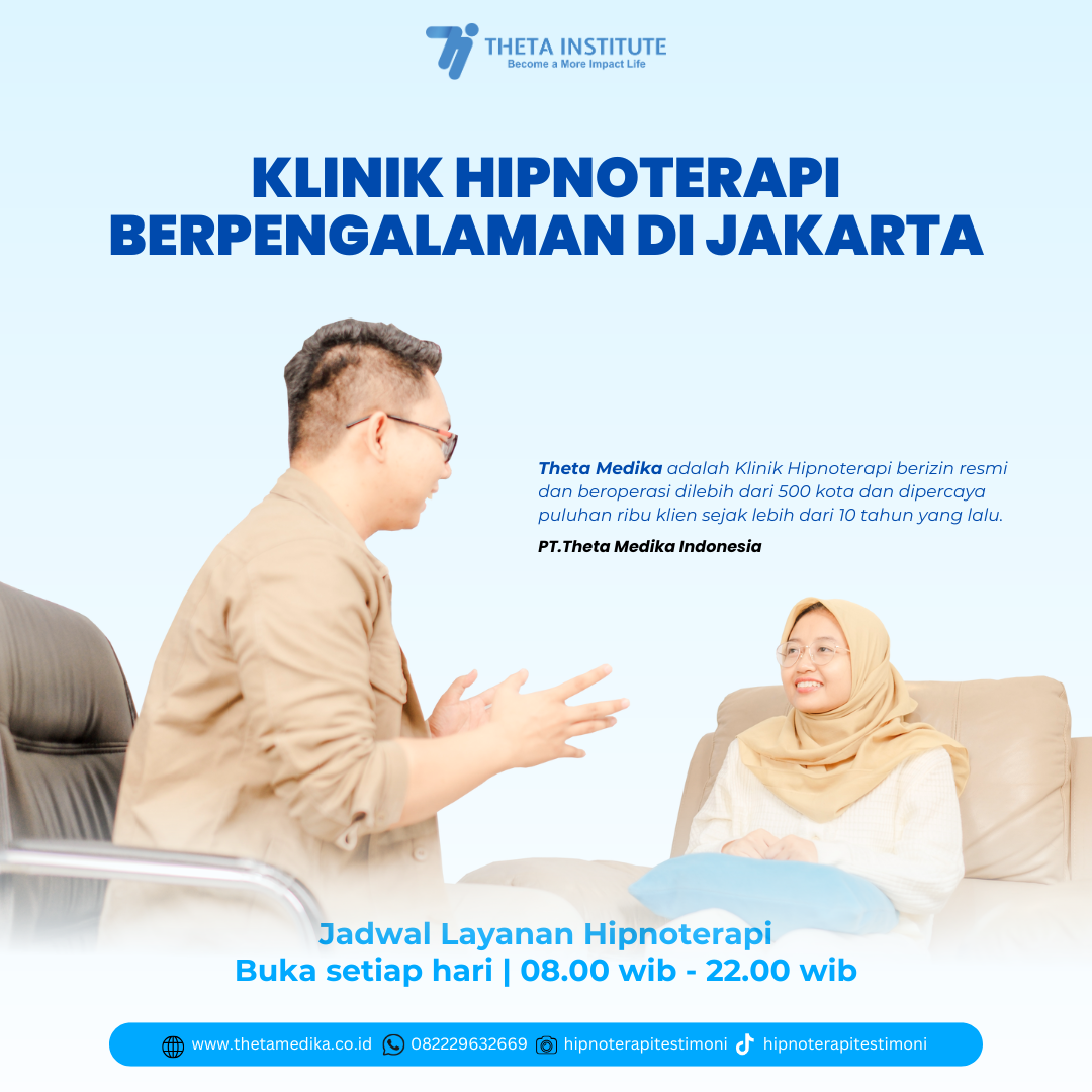 Klinik Hipnoterapi Di Jakarta Berpengalaman  – Theta Medika telah dikenal luas sebagai klinik hipnoterapi terpercaya di Jakarta Timur, dengan pengalaman lebih dari satu dekade dalam membantu individu mengatasi berbagai masalah psikologis dan perilaku. Selama lebih dari 10 tahun, Theta Medika telah menjadi pilihan utama bagi masyarakat Jakarta Timur dan sekitarnya yang mencari solusi profesional untuk berbagai tantangan mental, emosional, dan kebiasaan buruk yang mengganggu kehidupan sehari-hari.