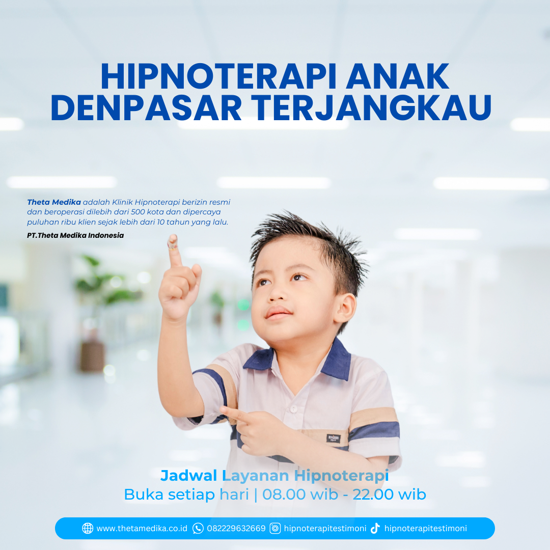 Bagi orang tua yang ingin mencoba hipnoterapi, kini tersedia banyak layanan profesional di Denpasar. Salah satunya adalah Theta Medika Denpasar, pusat terapi yang menghadirkan hipnoterapis berpengalaman dengan metode khusus yang aman bagi anak-anak. Saat memilih layanan, orang tua perlu memastikan bahwa klinik memiliki terapis bersertifikat dan berpengalaman. Theta Medika menjadi pilihan tepat karena berkomitmen membantu anak-anak mengatasi masalah emosional maupun perilaku dengan pendekatan hipnoterapi yang profesional dan terpercaya.