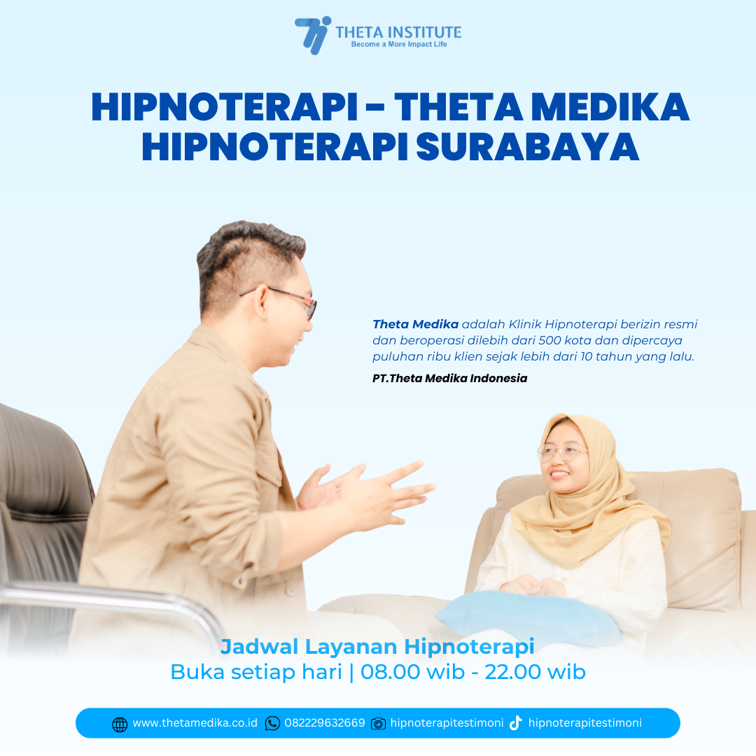 Hipnoterapi menjadi metode terapi yang semakin diminati untuk membantu mengatasi berbagai masalah psikologis dan emosional. Theta Medika Hipnoterapi Surabaya hadir sebagai pusat terapi profesional yang menawarkan layanan berkualitas untuk membantu individu mencapai keseimbangan mental dan emosional.