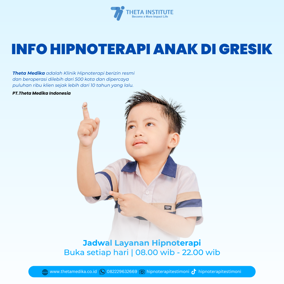 - Hipnoterapi merupakan solusi yang efektif dan aman untuk membantu anak mengatasi berbagai permasalahan psikologis dan perilaku. Theta Medika Hipnoterapi Gresik siap menjadi mitra bagi orang tua dalam membantu anak mereka berkembang dengan lebih baik. Jika Anda memiliki anak yang menghadapi masalah seperti kecemasan, kurang percaya diri, atau kebiasaan buruk, segera konsultasikan ke Theta Medika untuk mendapatkan solusi terbaik.