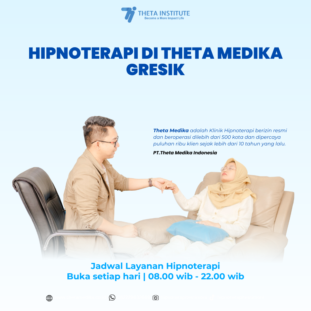 Hipnoterapi Di Theta Medika Gresik – ​Theta Medika Gresik Theta Medika Gresik merupakan bagian dari jaringan klinik hipnoterapi profesional yang telah berpengalaman lebih dari satu dekade dalam membantu masyarakat mengatasi berbagai masalah psikologis dan perilaku. Dengan lebih dari 100 cabang di seluruh Indonesia, Theta Medika berkomitmen memberikan layanan terapi yang efektif dan terpercaya.​
