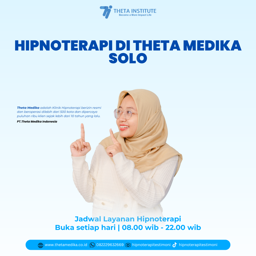 Hipnoterapi Di Theta Medika Solo – ​ Theta Medika Solo hadir sebagai pusat layanan hipnoterapi profesional yang siap membantu Anda menemukan ketenangan batin, mengelola emosi dengan sehat, serta melakukan perubahan positif dalam hidup. Dengan metode terapi modern yang aman dan terbukti efektif, Theta Medika Solo menjadi pilihan tepat bagi siapa saja yang ingin keluar dari lingkaran masalah mental dan kebiasaan yang menghambat kualitas hidup.