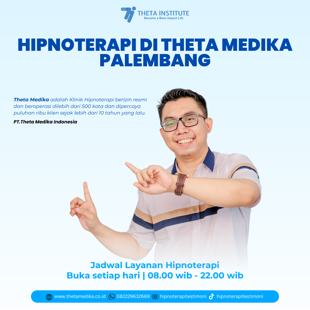 Theta Medika Palembang merupakan salah satu klinik hipnoterapi terkemuka di Indonesia yang menyediakan layanan terapi berbasis hipnosis untuk membantu mengatasi berbagai permasalahan psikologis dan perilaku, baik pada anak-anak maupun orang dewasa. Dengan pendekatan profesional serta metode terapi yang aman dan teruji, Theta Medika Palembang menjadi pilihan tepercaya bagi masyarakat Palembang dan sekitarnya dalam menjaga kesehatan mental dan emosional.